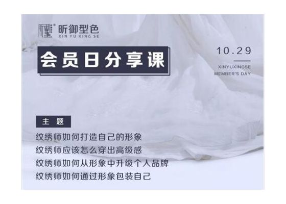 #昕御型色会员日#10月29日火爆来袭,精准定位形象,纹绣师专属福利,满足你高质追求!高级感穿搭、形象包装设计,从形象中升级个人品牌,你感兴趣应有尽有!