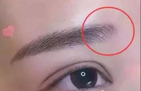 (如下图)眉毛的整体效果还是栩栩如生,只是红圈内的眉头线条过于明显、过于规整。不能与眉头过度到眉身之间的眉毛融合在一起。