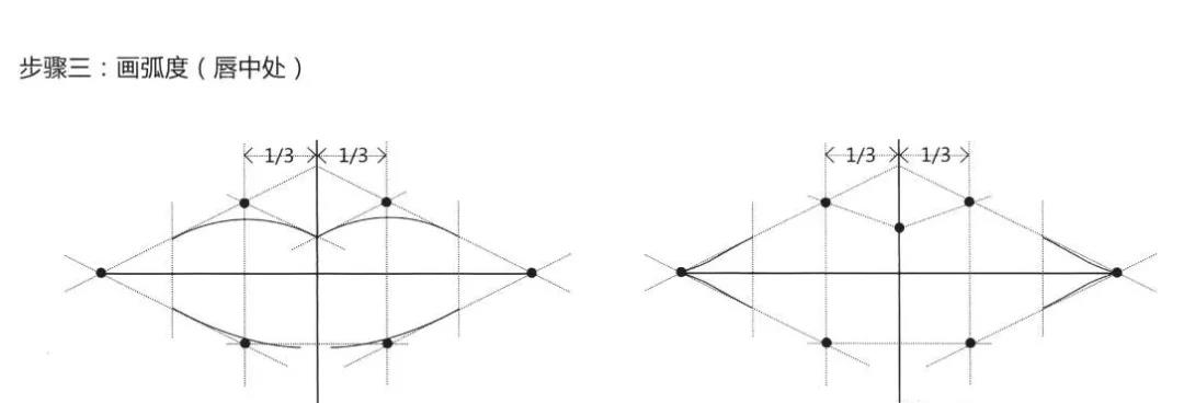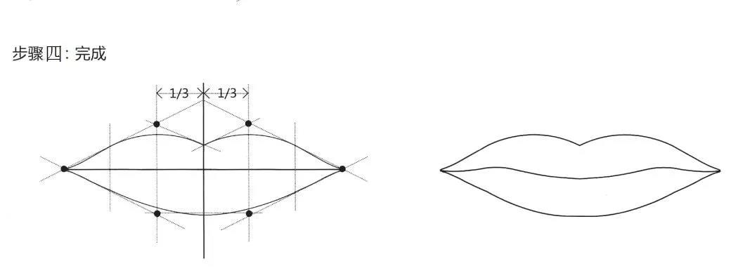 运用“起点定位法”定出唇峰、唇珠、嘴角、下唇谷峰位置,然后链接起来(如上图)。
